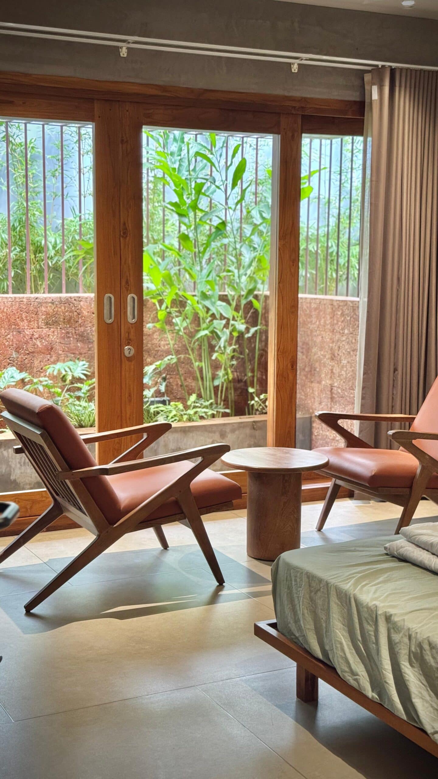 Paved walkways and cozy seating areas for relaxation.